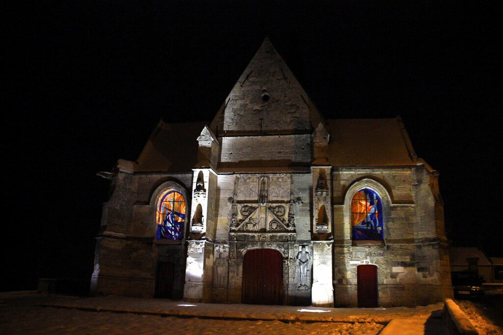 Au long de plusieurs années de création, l’église de Blérancourt a commandé à Fleur Nabert un premier ensemble de vitraux dans le baptistère (2008), puis les deux grands vitraux de façade (2012), l’autel et l’ambon (2015) et enfin deux vitraux lancettes dans les chapelles latérales (2017).